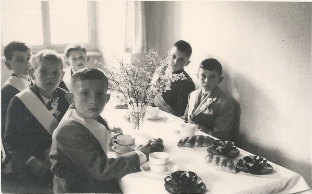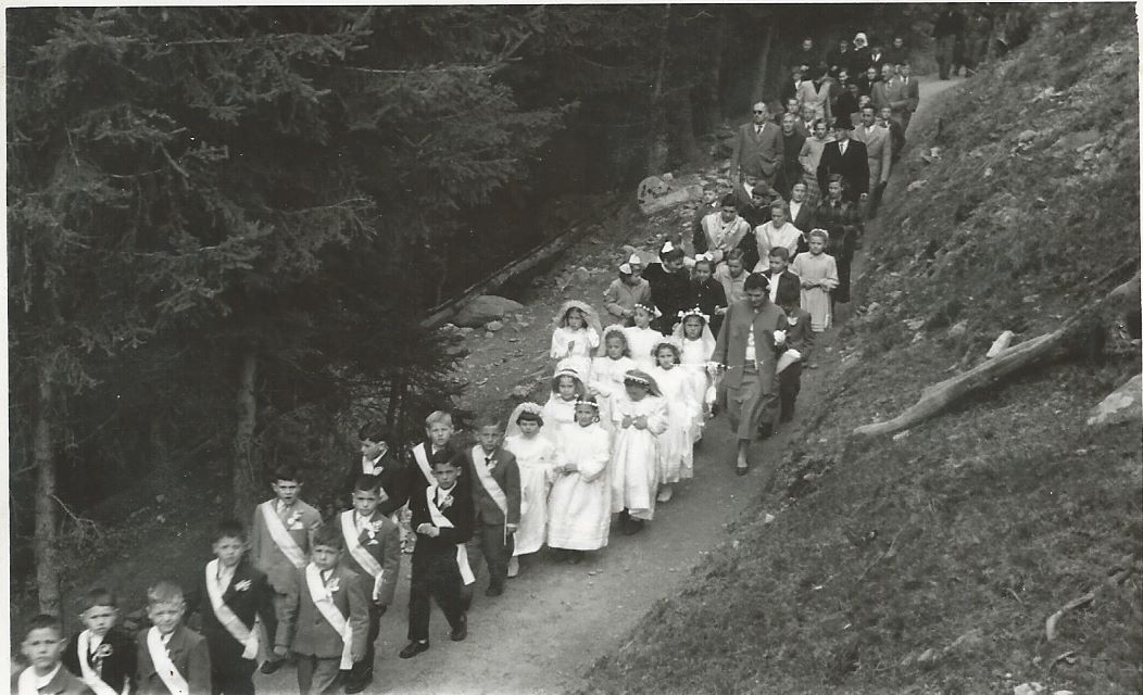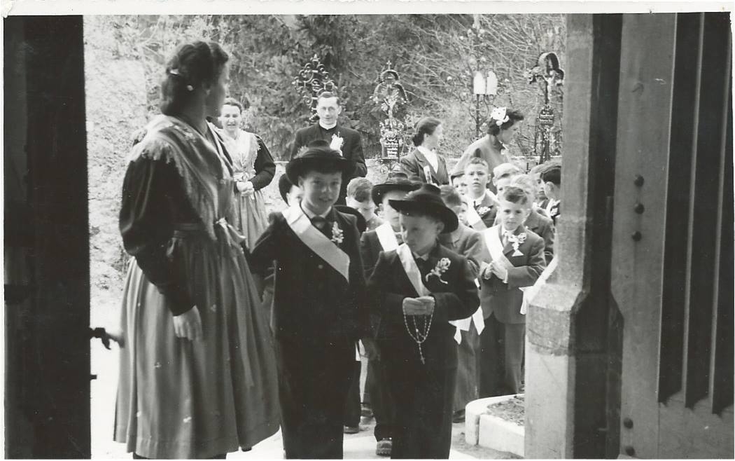 Stiamo entrando per ricevere la Prima Comunione, bimbi Tedeschi assieme ai due bimbi Italiani.